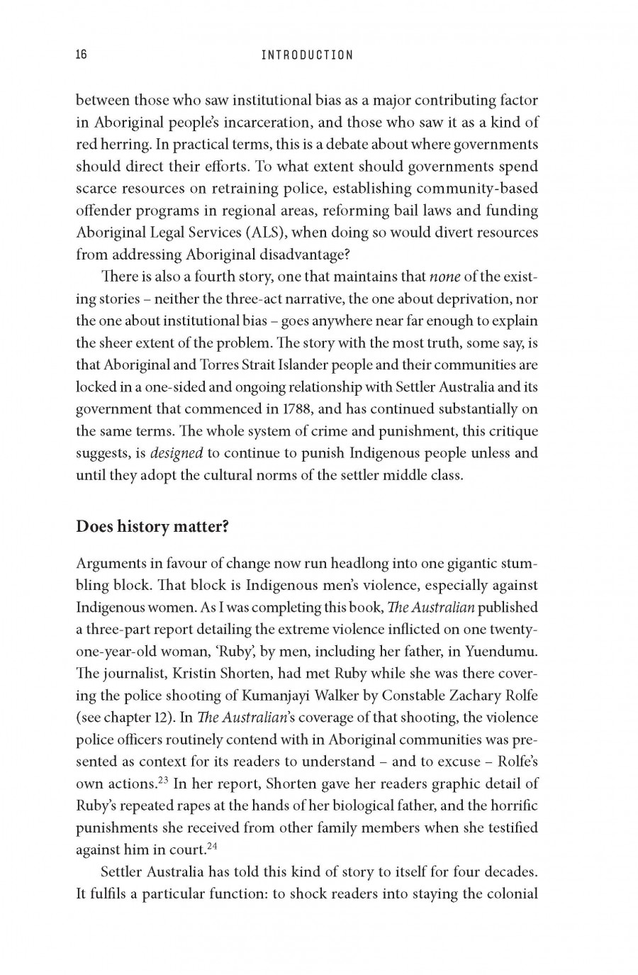 ‘How should we tell the story of Indigenous incarceration in Australia? Only part of it is in the numbers. And we can’t get very far by looking at the crimes that see Indigenous offenders punished by courts and sentenced to prison … To really grapple with the problem of Indigenous incarceration requires us to accept the possibility that there might be another way. That the current state of affairs – where entire families sometimes spend time behind bars – is not inevitable.’—Russell Marks
