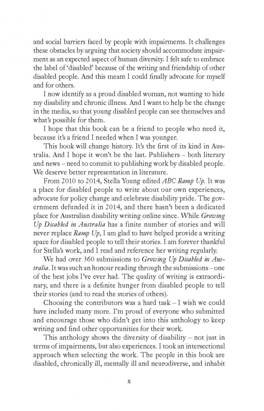 Contributors include senator Jordon Steele-John, paralympian Isis Holt, Dion Beasley, Sam Drummond, Astrid Edwards, Sarah Firth, El Gibbs, Eliza Hull, Gayle Kennedy, Carly-Jay Metcalfe, Fiona Murphy, Jessica Walton and many more.