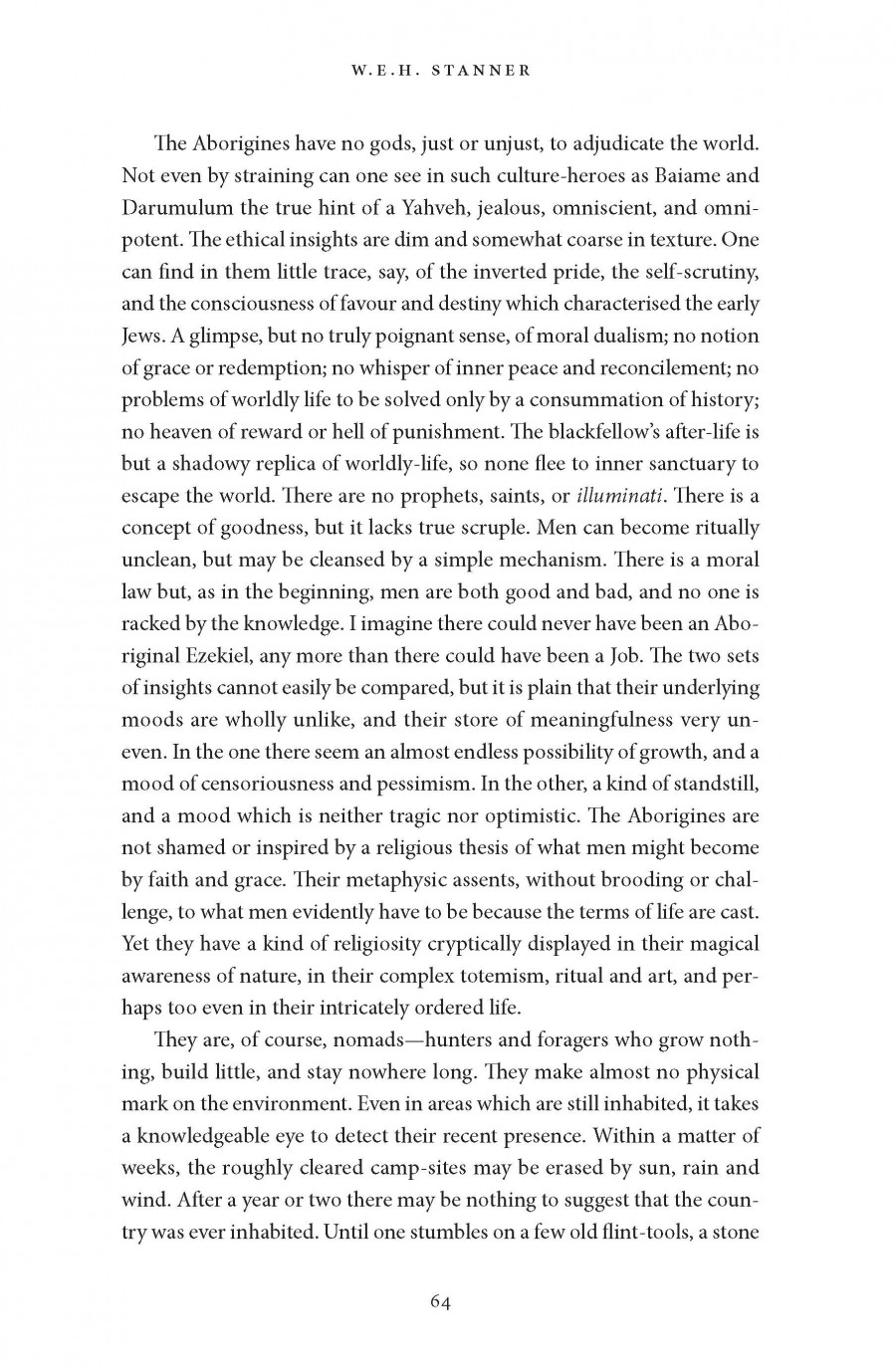 'Bill Stanner was a superb essayist with a wonderful turn of phrase and ever fresh prose. He always had important things to say, which have not lost their relevance. It is wonderful that they will now be available to a new and larger audience.' —Henry Reynolds